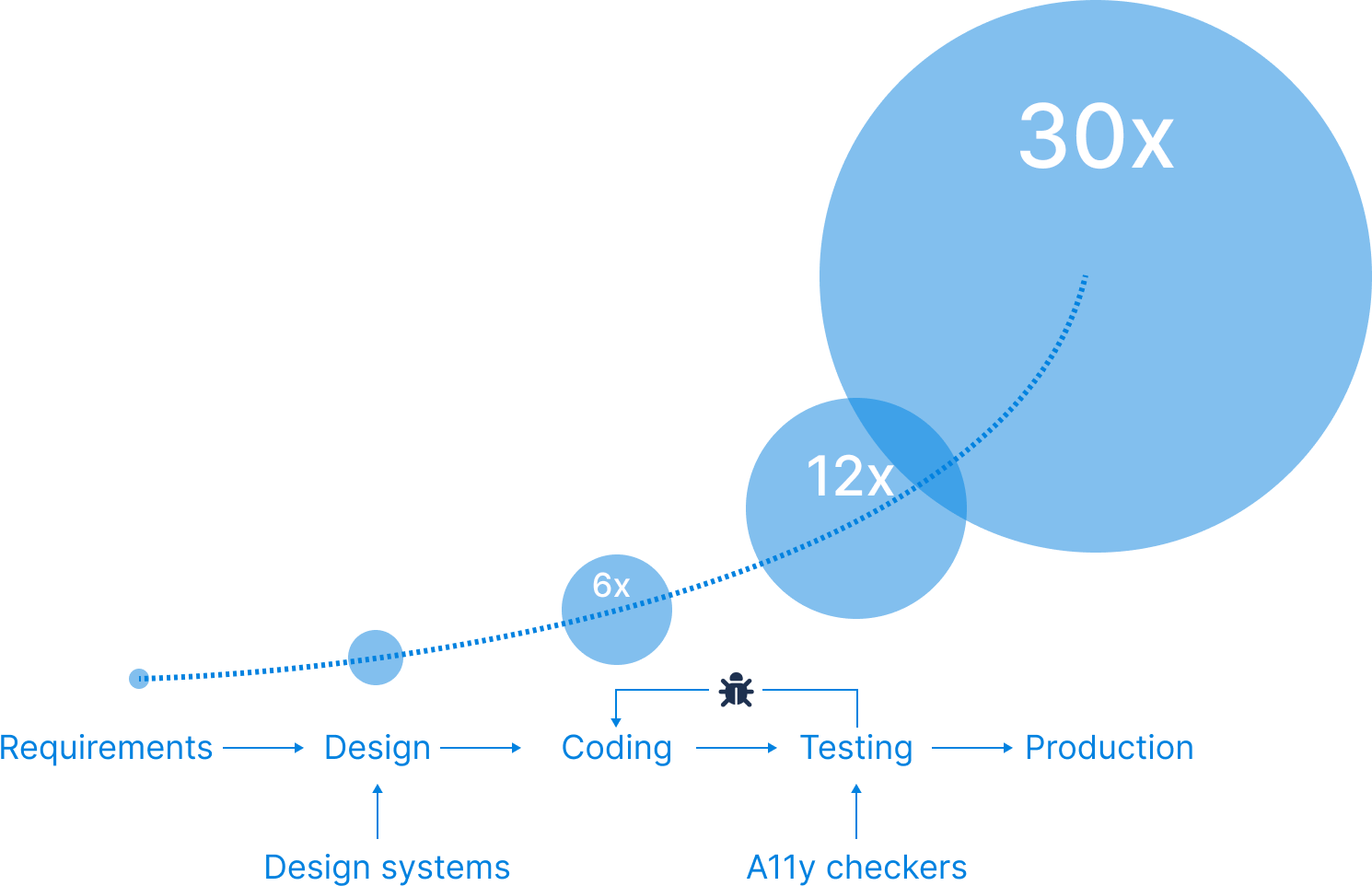 This is what a regular product lifecycle looks like when superimposing the cost of fixing accessibility on top of it.